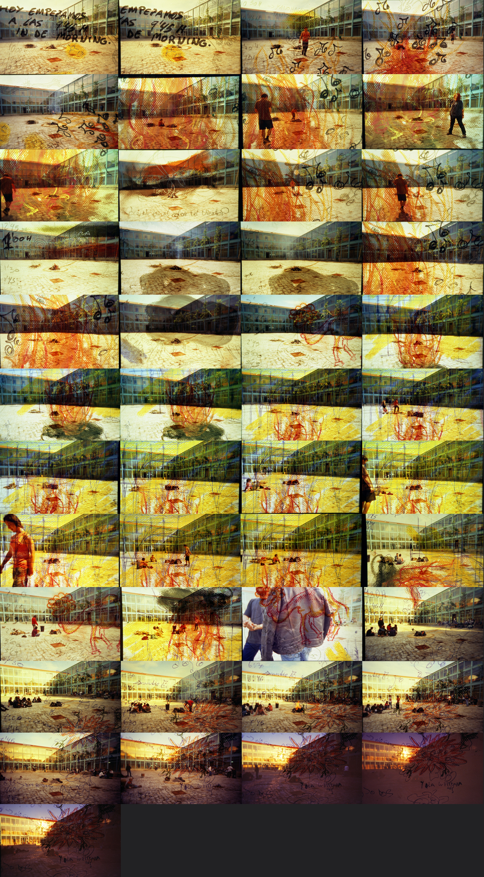 Secuencia fotográfica compuesta por 48 imágenes. Disparos realizados cada cuarto de hora desde las 9:45. Positivo a color 35 mm., Kodak Ektachrome E100. Pontevedra, 1996.