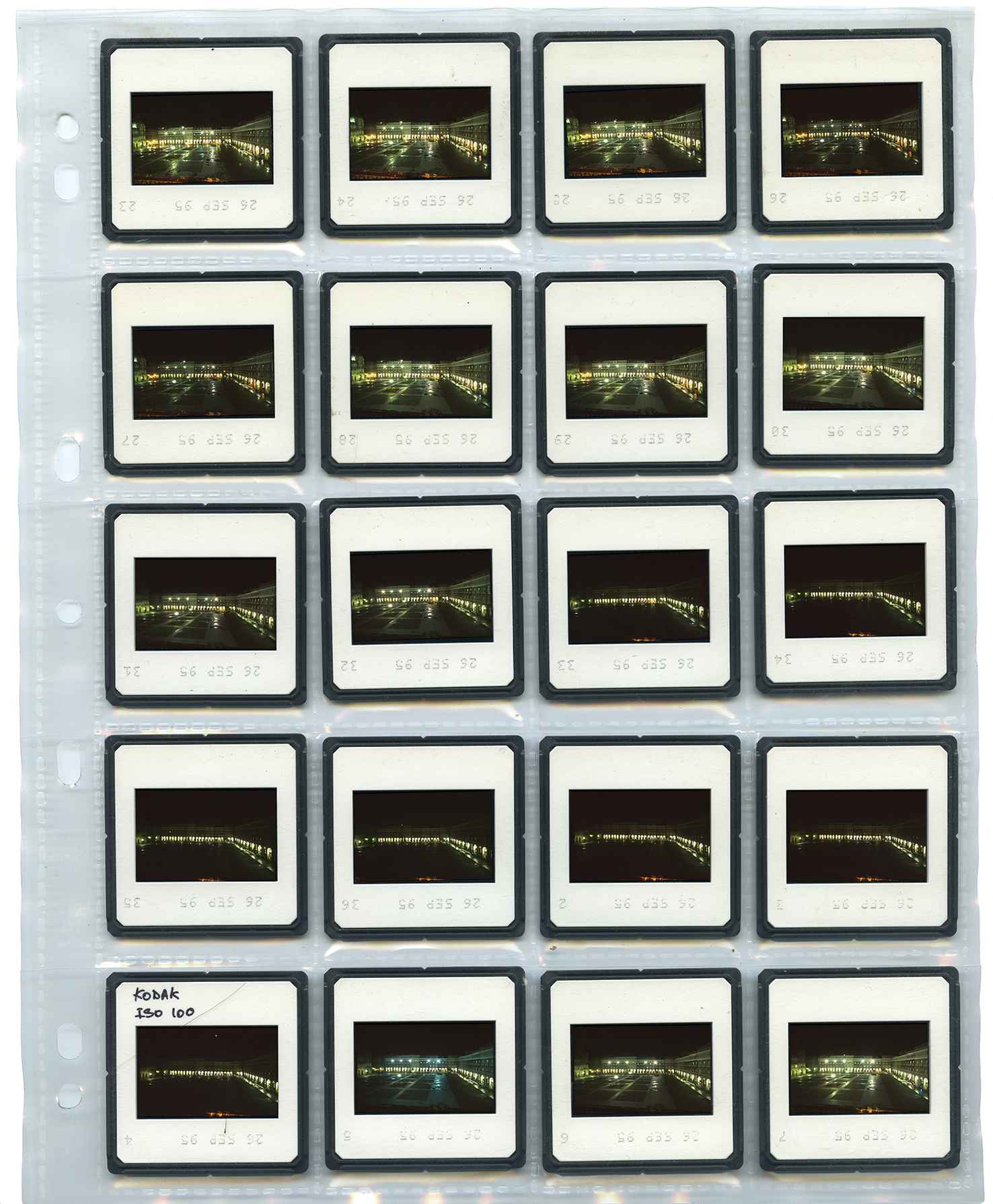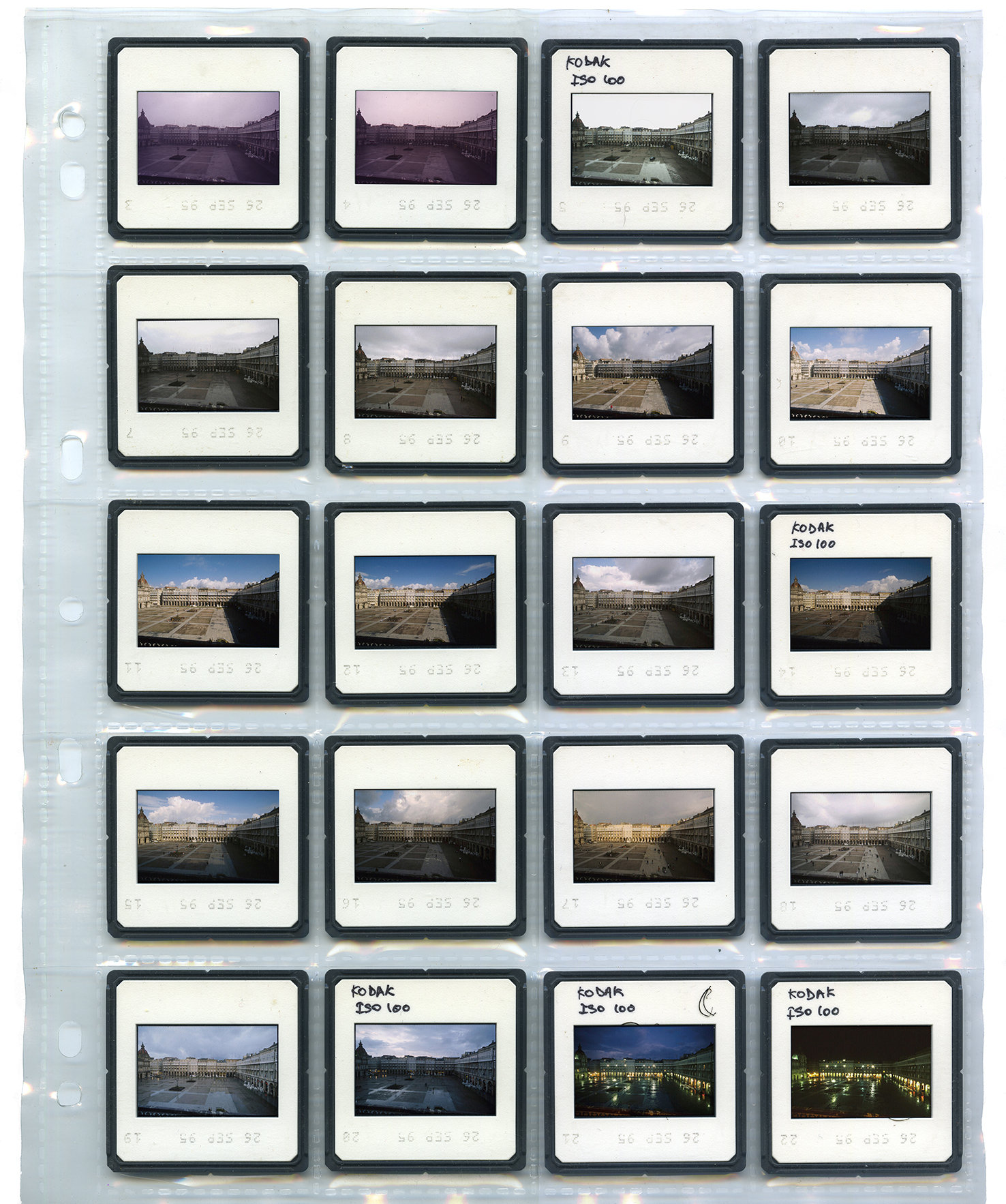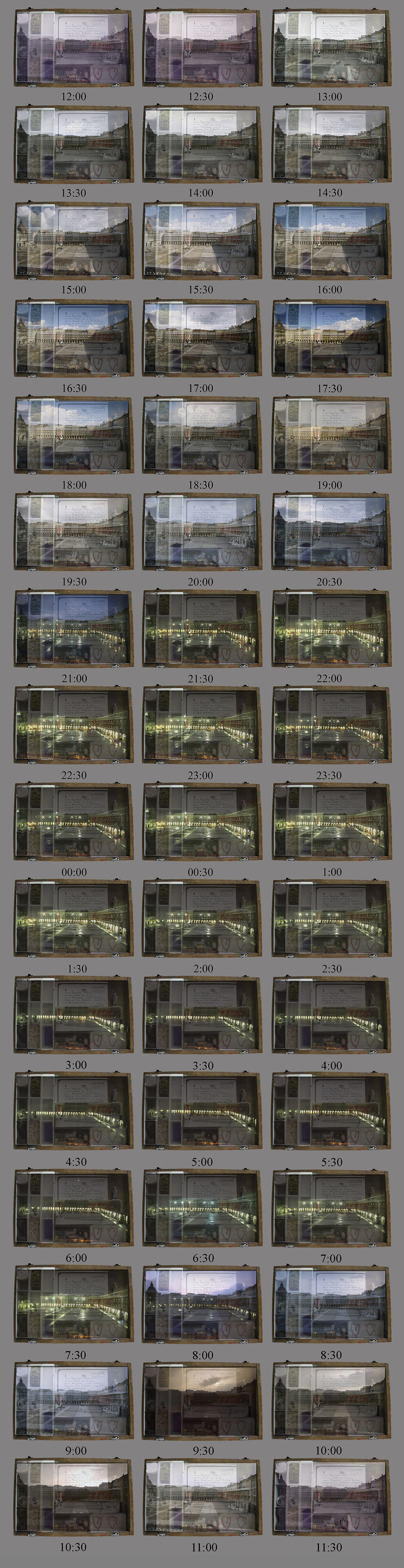 Secuencia fotográfica compuesta por 48 imágenes dobles (Collage digital). Disparos efectuados cada media hora durante 24 horas. Positivo a color 35mm., Kodak Ektachrome E100.  A Coruña, septiembre 1995