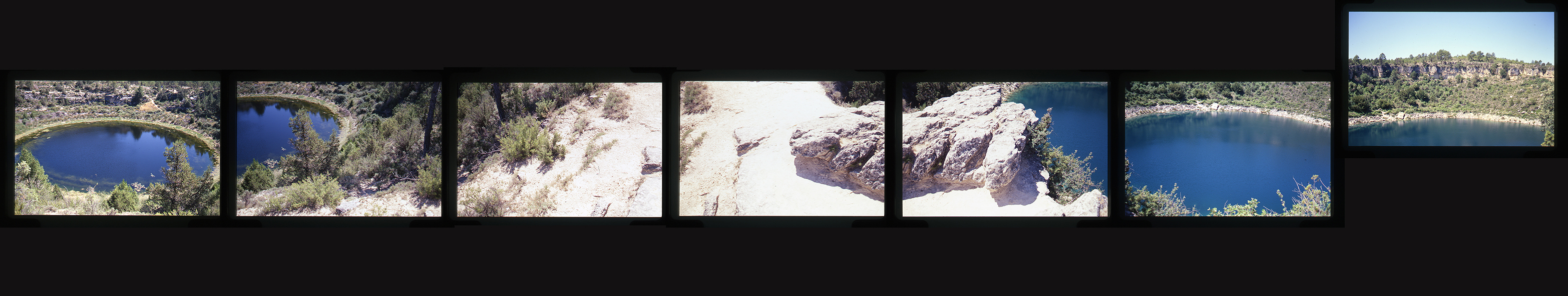 Secuencia fotográfica compuesta por 7 imágenes. Barrido de cámara y segundo encuadre. Positivo a color 35mm., Kodak Ektachrome E100. Lagunas de Cañada del Hoyo, Cuenca, 2000